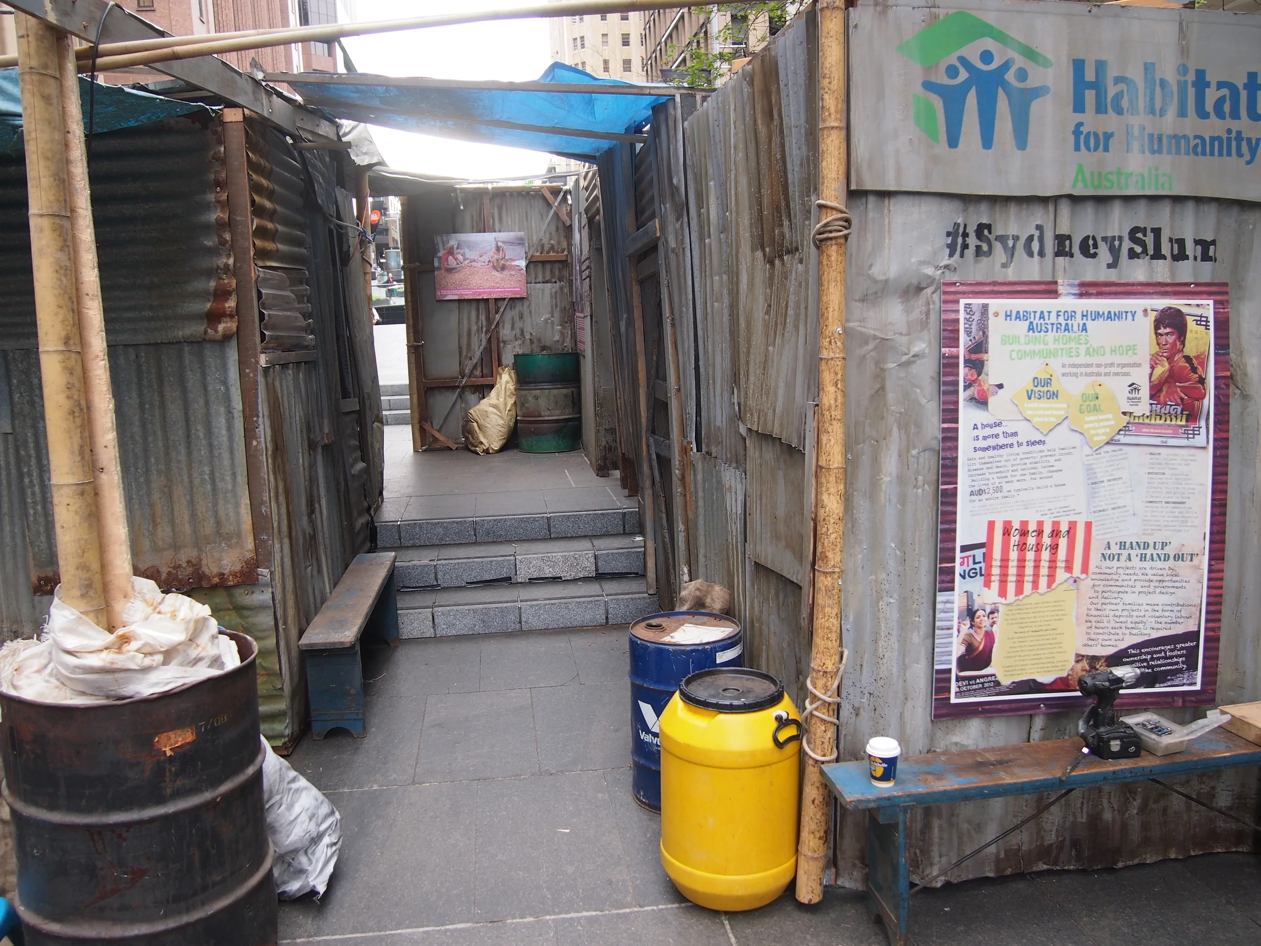 I designed, built and installed a Bangladeshi slum in Martin Place. This was a poverty awareness campaign instigated by Habitat for Humanity.